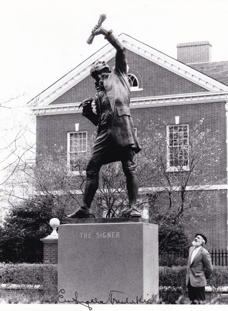 Evangelos William Frudakis was the most gifted sculptor of his generation and we believe a good case could be made of all time!His sculpture displays consummate skills in clay and stone, great depth of knowledge in human form, proportion, and anatomy, and a tireless search for unique and exciting ideas. These elements are fully realized in works such as Reaching, with it’s extraordinary energy and loveliness, or the amazing life filled portraits of “Ginny” and “Mom” with her powerful heart felt pathos, and his iconic Signer next to Independence Hall embodying the inner fire and spirit of our Country’s birth.When we were growing up with our Dad, EvAngelos, he always told us to leave a place better than you found, and he certainly has.We hope you enjoy looking at his statues.Jennifer and Tony Frudakis